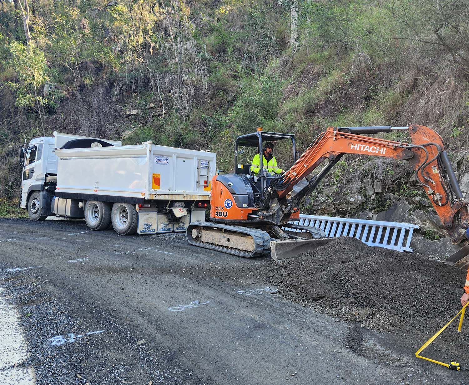 Photo gallery contains images of the damage done to Kempsey road and includes early emergency and rehailitation works. As works are undertaken and completed, more recent images will be added to the top of the gallery. (Hover over, and click on any image to enlarge the photo.)